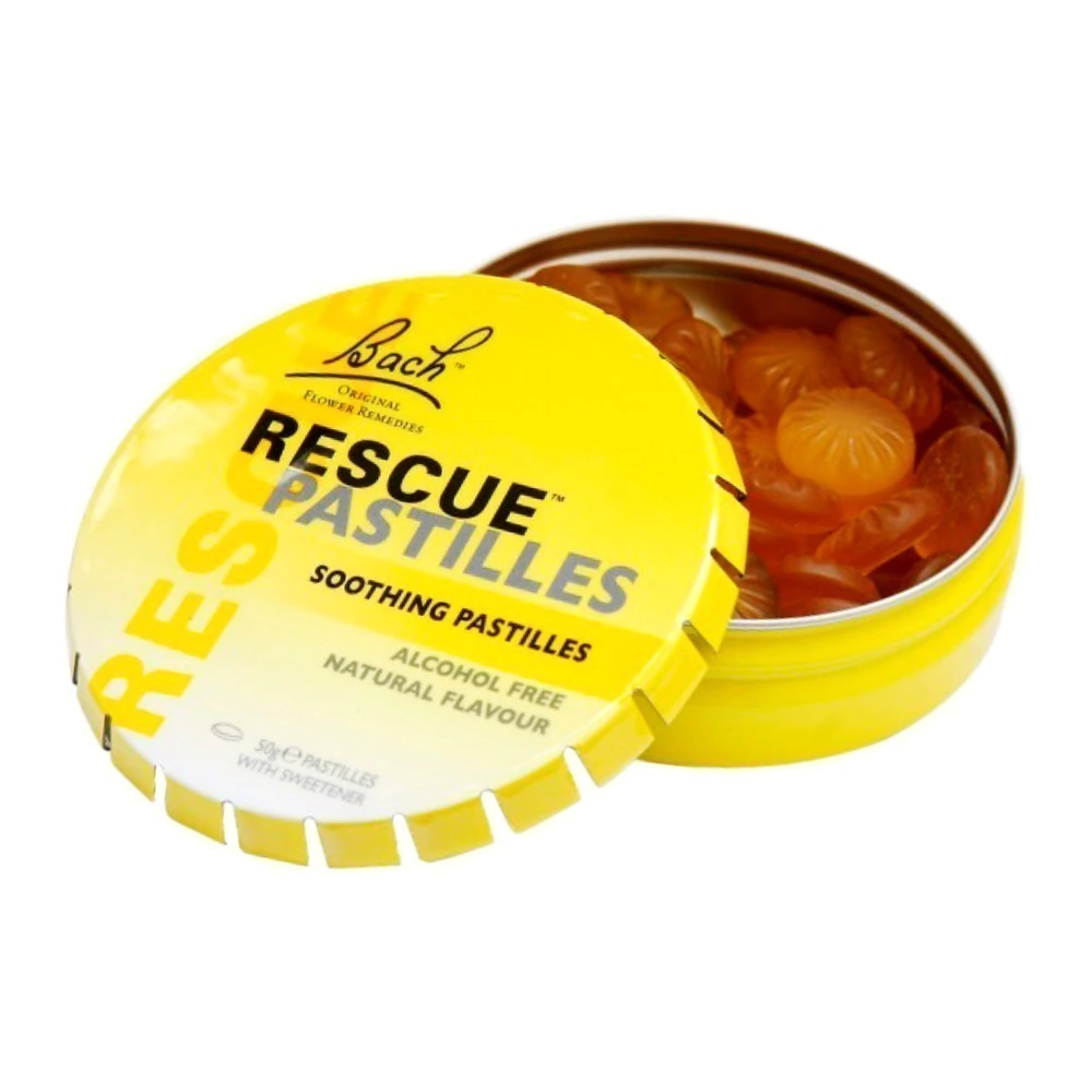 Pastilha sabor Laranja, contendo 4 gotas (1 dose) do Rescue® concentrado. Não contém álcool. Lata 50g (aproximadamente 36 pastilhas).